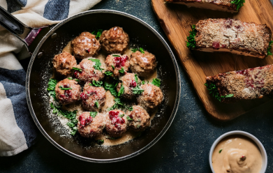 Köttbullar med pepparrot och äpple – niepowtarzalne klopsiki mięsne o chrzanowym posmaku z karmelizowanymi kawałkami jabłek.